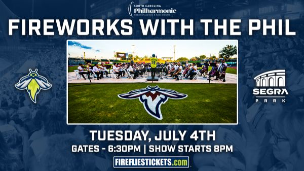 Join us at Segra Park for Fireworks with the Phil 2023. Gates open at 6:30 PM and the orchestra will begin playing around 8:00 PM. Segra Park is a CASHLESS venue and is a CLEAR BAG POLICY venue. Call 803-726-4487 ext. 1 with questions or to inquire about Club Seating / Suites and food packages.